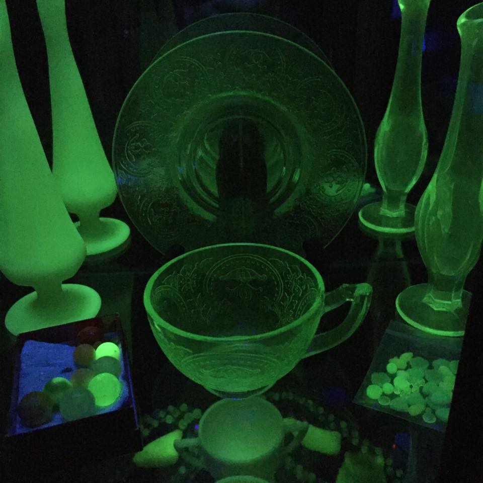 My curio of uranium/vaseline glass will either intrigue or frighten you. It’s a beautiful array of “creepy green light”.