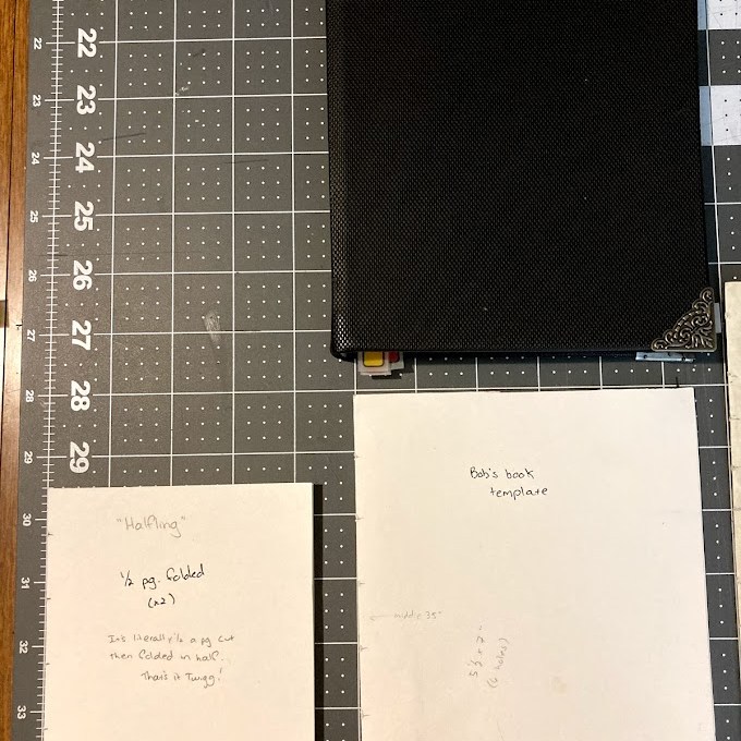 Halfling (left) & Bob’s book (middle) sizing (example of Bob’s book above template) & Warlock (far right)